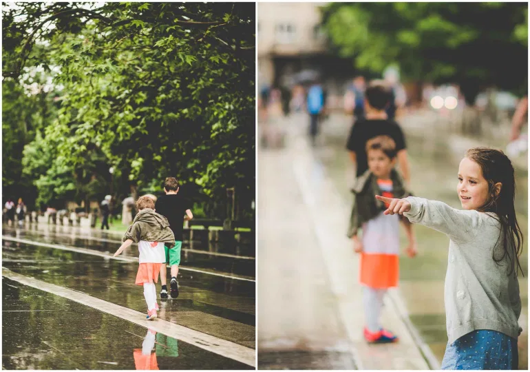 Разбира се, да се изнижем двете по женски с Мая, както планирахме, се оказва кауза пердута, а бурята е просто следствие, което се изсипва над сплеснатите ни от липсата на топла вода коси. „Да си бях взела сапунерката“, вяло отбелязвам докато пет деца и четирима възрастни буквално населяваме една плочка под кестена в парка. Смешно е много, само дето е и толкова много мокро. „Няма ли да снимаш?“, закача ме Н. Дъждът си тръгва така, както е пристигнал, доволен от добре свършената работа по напояване на флората и фауната. Косите ни добиват форма, Калоян се провиква „Урааааа, няма да се къпем!“, разделяме се.